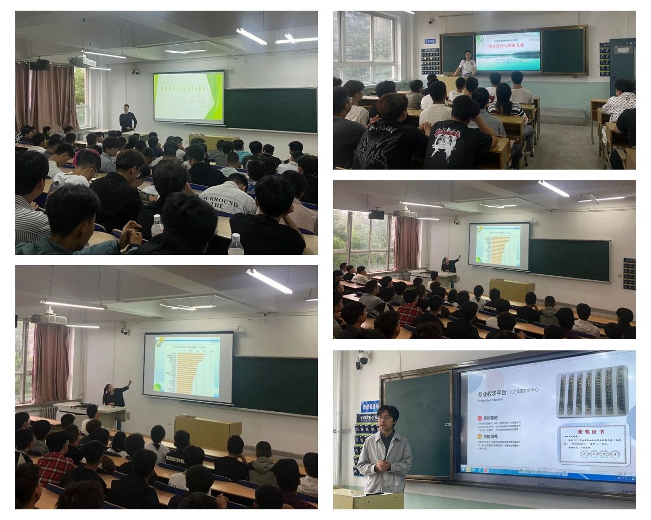 来自机械制造及自动化、模具设计与制造、智能焊接技术、材料成型及控制技术、数控技术五个专业的教研室主任及相关专业负责人从专业建设、培养目标、课程体系、技能考证、就业升学等方面进行了深入的讲解,生动展示了各个专业的特色优势和就业前景。并激励学生树立明确奋斗目标,努力学习专业技术,不断提高自身综合素质。随后,各班班主任带领新生对各专业实训基地进行观摩。专业教师对实训教学主要环节进行讲解并邀请同学体验。通过现场参观,同学们对专业特点、实训课程有了更加深入、直观的了解,对培养学生专业兴趣、激发学习热情,尽快融入大学生活起到了良好的推动作用。