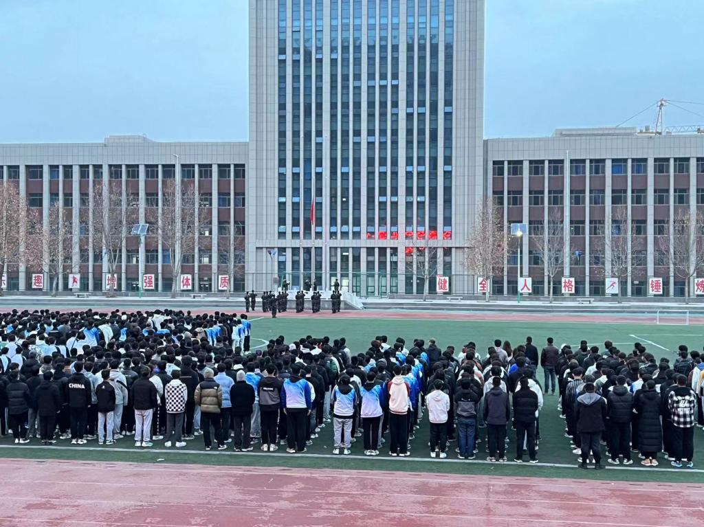 晨光熹微,国旗护卫队昂首阔步,迈着整齐划一、铿锵有力的步伐,护卫着鲜艳的五星红旗步入旗台。在庄严的国歌声中,五星红旗冉冉升起,迎风飘扬。全体师生肃立,面向国旗,庄严敬礼,心中充满对祖国的无限热爱和敬仰。