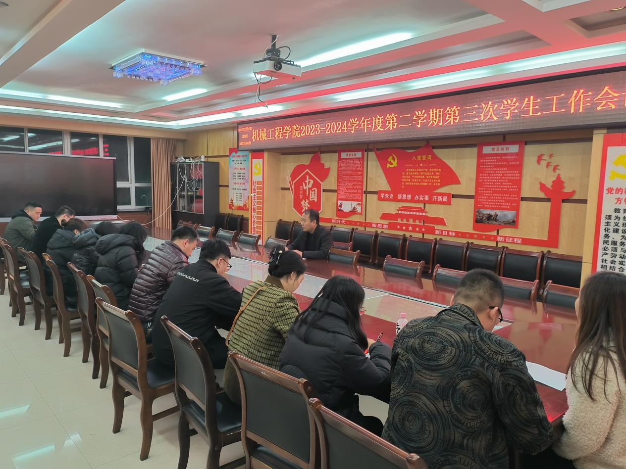 3月17日,在2号教学楼208会议室,机械工程学院召开2024年春季学期第3次学生工作会议。学院党总支副书记毛文亮及全体辅导员、班主任参加。