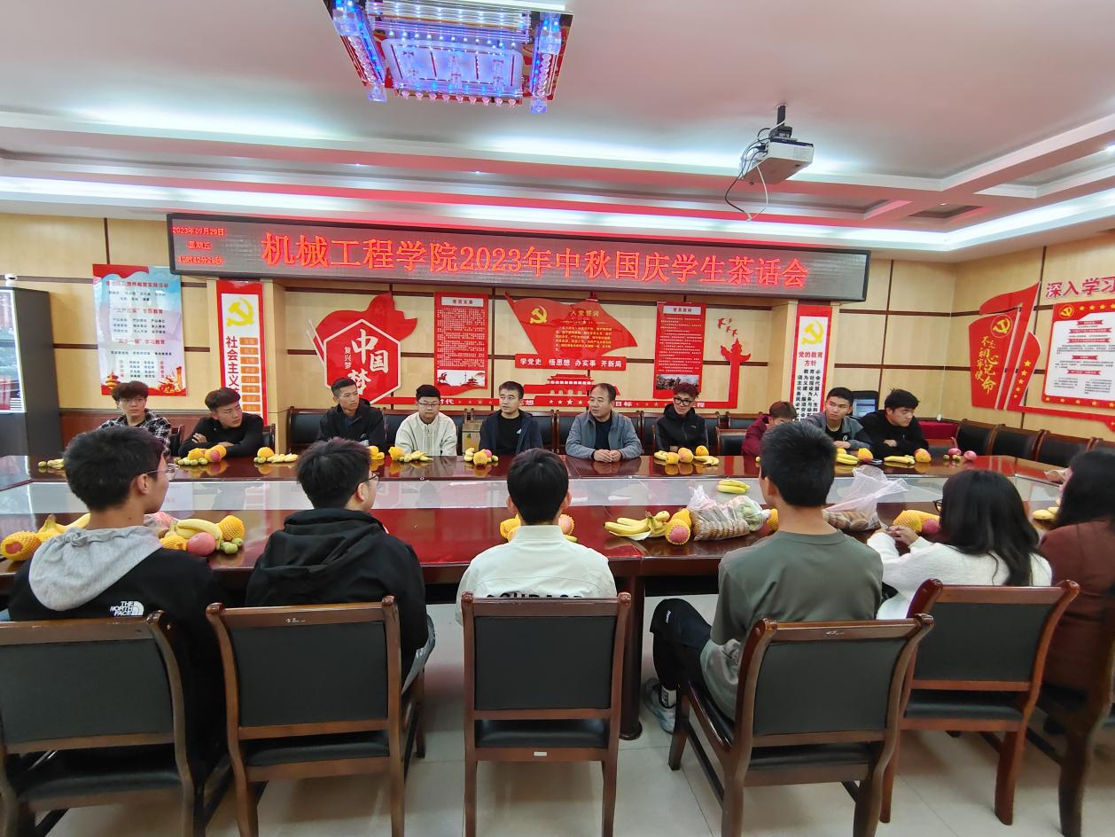 花好月圆迎中秋,国泰民安庆国庆。9月28日上午,中秋国庆“双节”来临之际,在2号教学楼208会议室,机械工程学院举办2023年中秋国庆学生茶话会。学院党总支副书记毛文亮、在校老师与同学们欢聚一堂,畅叙情谊,欢度佳节。