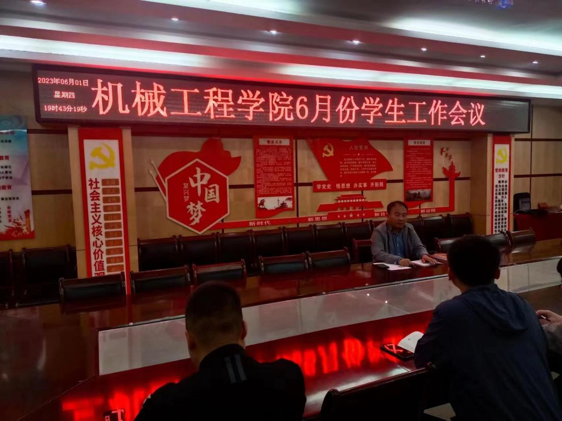 6月1日,在2号教学楼208会议室,机械工程学院召开6月份学生工作会议,学院全体辅导员及班主任参加。
