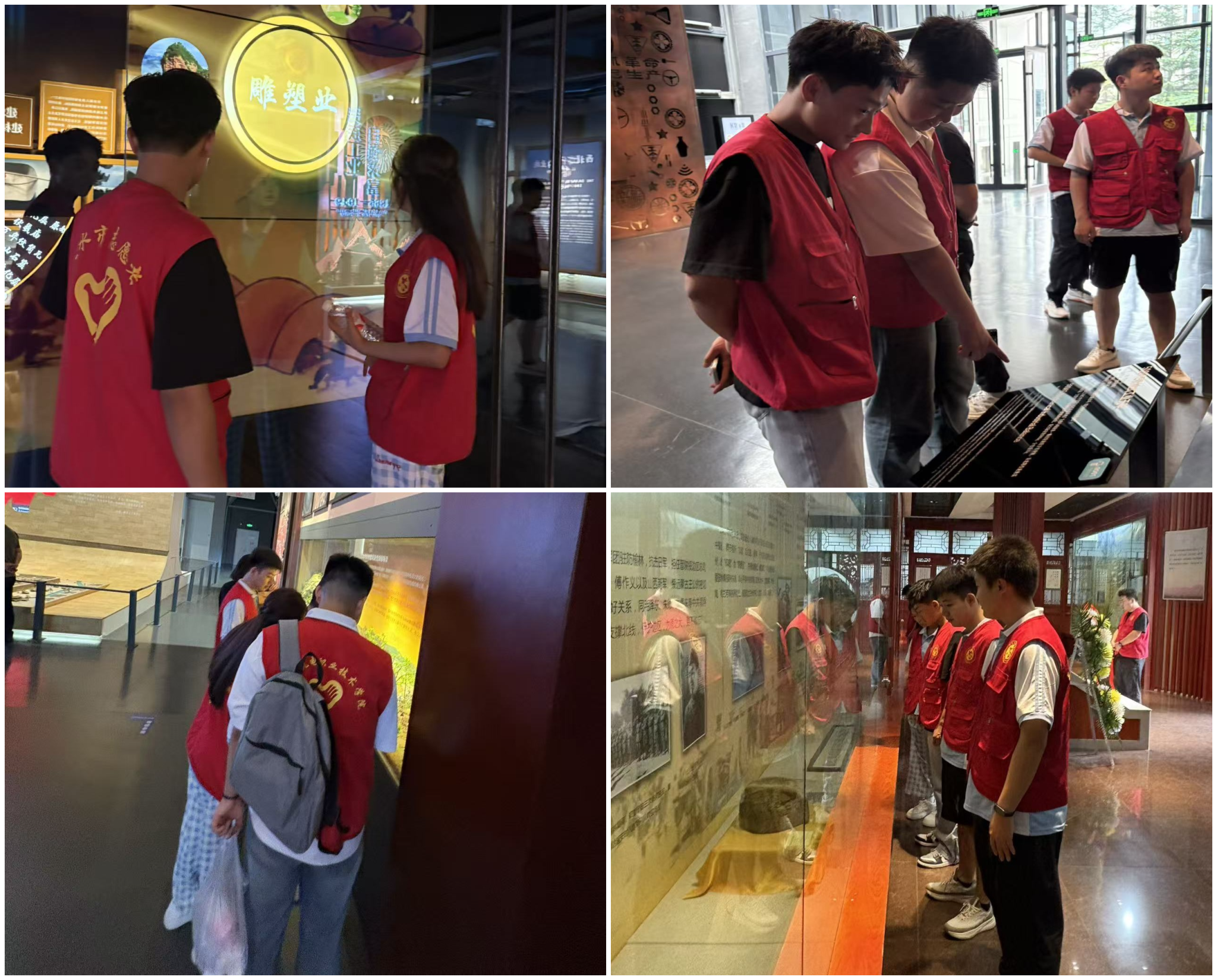 缅怀仪式后,实践团化身“红色守护者”,拿起扫帚、抹布开展志愿清扫。同学们细致擦拭展柜玻璃、清理庭院落叶、规整参观步道。机械学子以精益求精的“工匠态度”对待每一处角落,让革命圣地在青年手中焕发新颜。“擦拭的是灰尘,守护的是精神”,团员席洋浩感慨道。