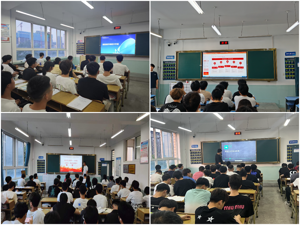 会上,各班共同观看精心挑选的爱国教育视频,视频中英雄先烈的感人事迹、祖国发展的辉煌成就,让同学们深受触动。班主任通过PPT课件,从历史、文化、社会等多个维度,深入阐述爱国精神的内涵与时代价值,并结合学生实际讲解践行爱国精神的方法与路径。班级讨论环节,同学们踊跃发言,结合自身实际,分享对爱国的理解与践行爱国精神的想法,现场气氛热烈。