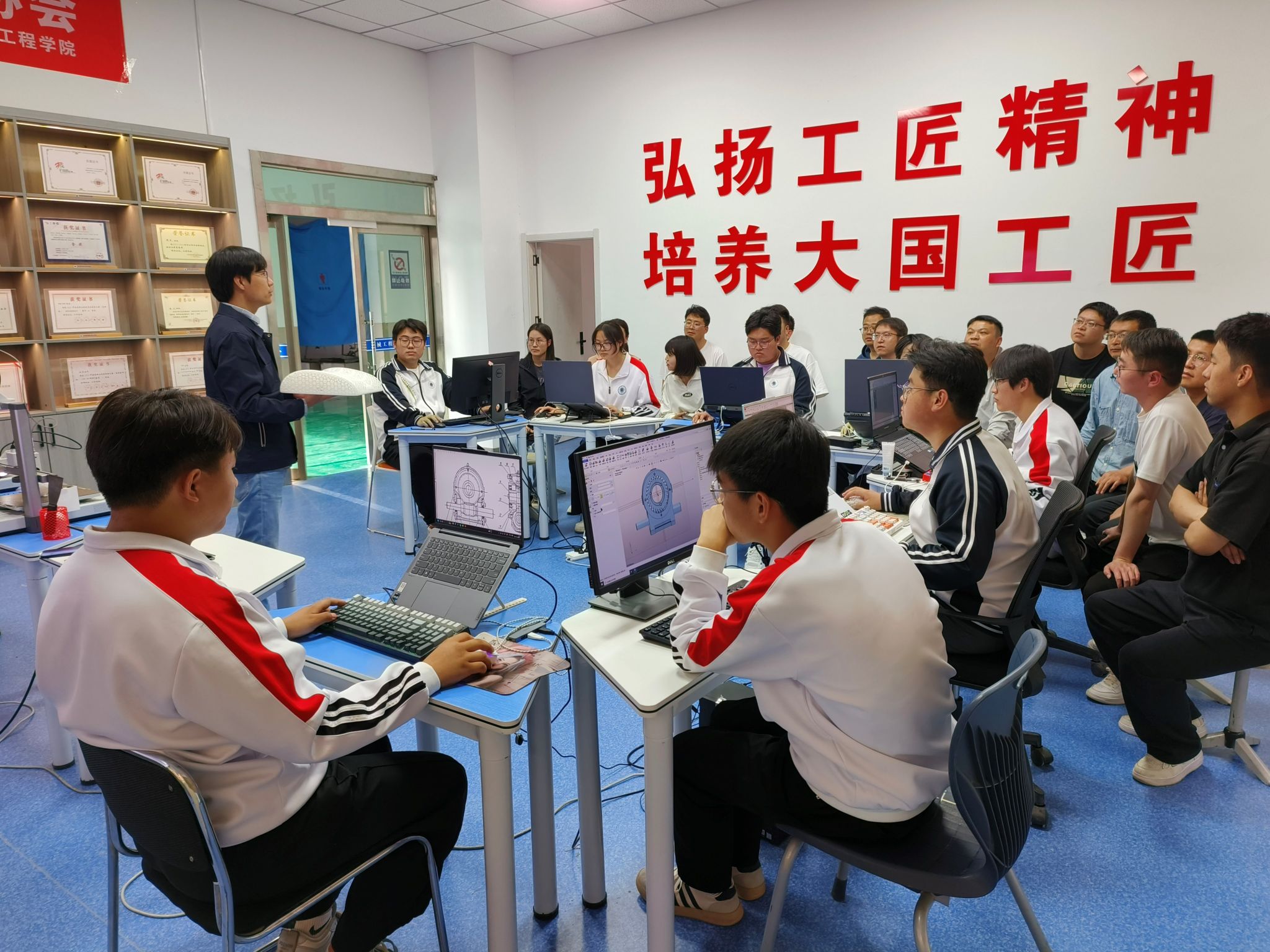 在“增材制造及精密成形”技艺技能传承创新工作室,张昊还向同学们作了“3D打印技术与中国古典艺术结合”的专题授课,让同学们切身感受了先进制造技术与中国古典艺术结合的魅力。