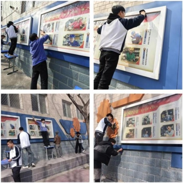 3月11日,30余名志愿者齐聚尚德楼南侧,深度清洁沿路展示栏。同学们手持抹布、水桶等工具,分组对展板玻璃、边框及支架进行细致擦拭,重点清理积尘与顽固污渍。经过两小时劳动,文化展窗焕然一新,成为校园文化传播的明亮窗口。