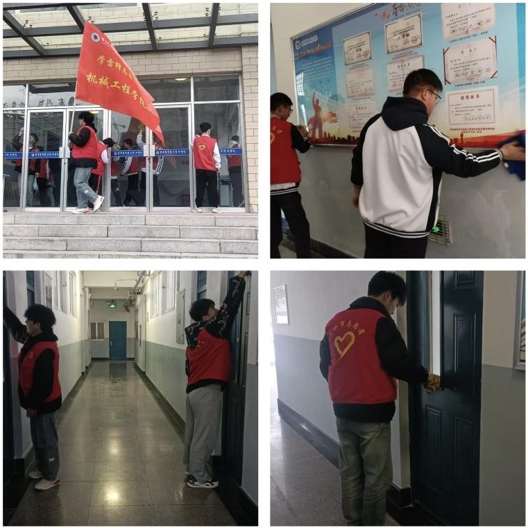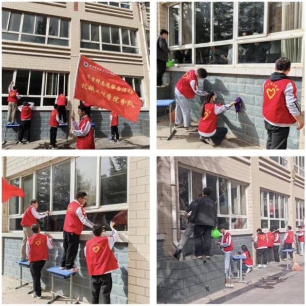 3月14日, 40余名志愿者重点清洁尚德楼一楼的教室玻璃及墙面,还原教室整洁面貌,活动现场志愿者们专注工作,相互配合的场景成为春日校园最温暖的画面。