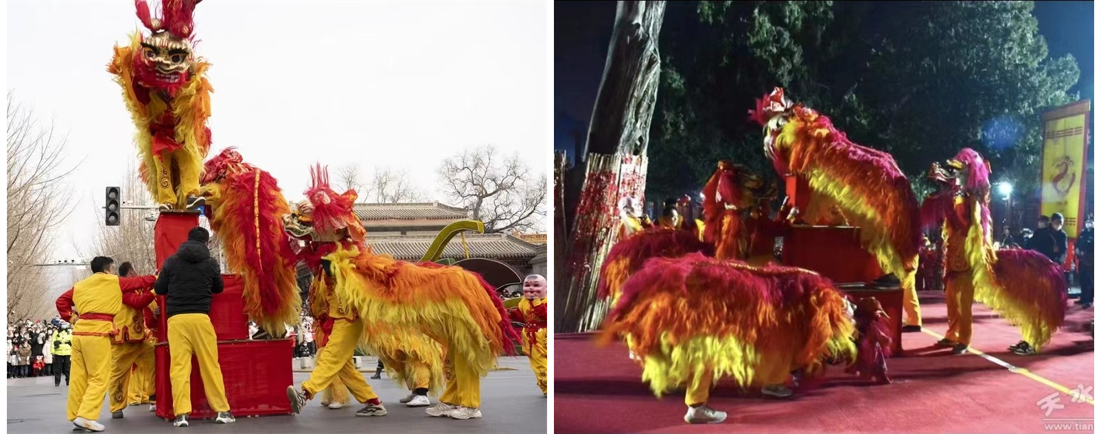 表演当天,田浩志与搭档在震天的京锣声中化身为跃动的赤色雄狮。他们在三层八仙桌上表演“云里翻”绝技,当狮头最终昂立于三丈高处,冬日阳光刺破云层,现场观众被深深震撼。那一刻,田浩志感受到文化血脉共振的轰鸣,他明白,非遗传承不仅是技艺的传承,更是文化的传承。