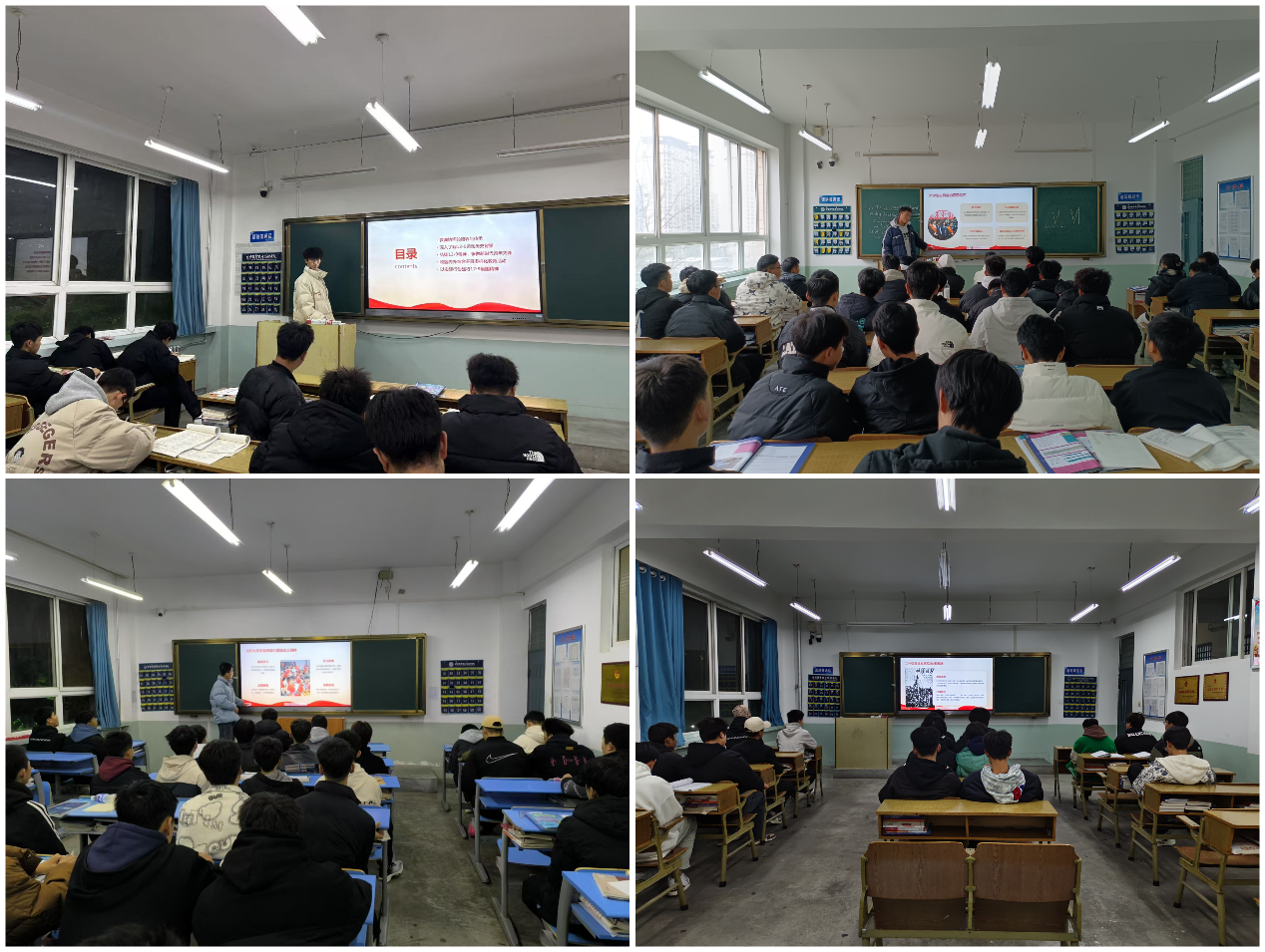 会上,各班通过对12·9运动历史资料的展示与讲解,让同学们对12·9运动的背景、经过及意义有了深入的理解。其次,各班设置了互动环节,同学们纷纷发言,表达自己对青年学子爱国精神的感悟,分享在新时代如何传承和发扬爱国情怀。最后,各班主任对班会进行总结,着重强调爱国是每一位同学的责任与使命,为深化国防教育、筑牢参军根基、激发学生参军入伍、建功立业筑牢思想根基。