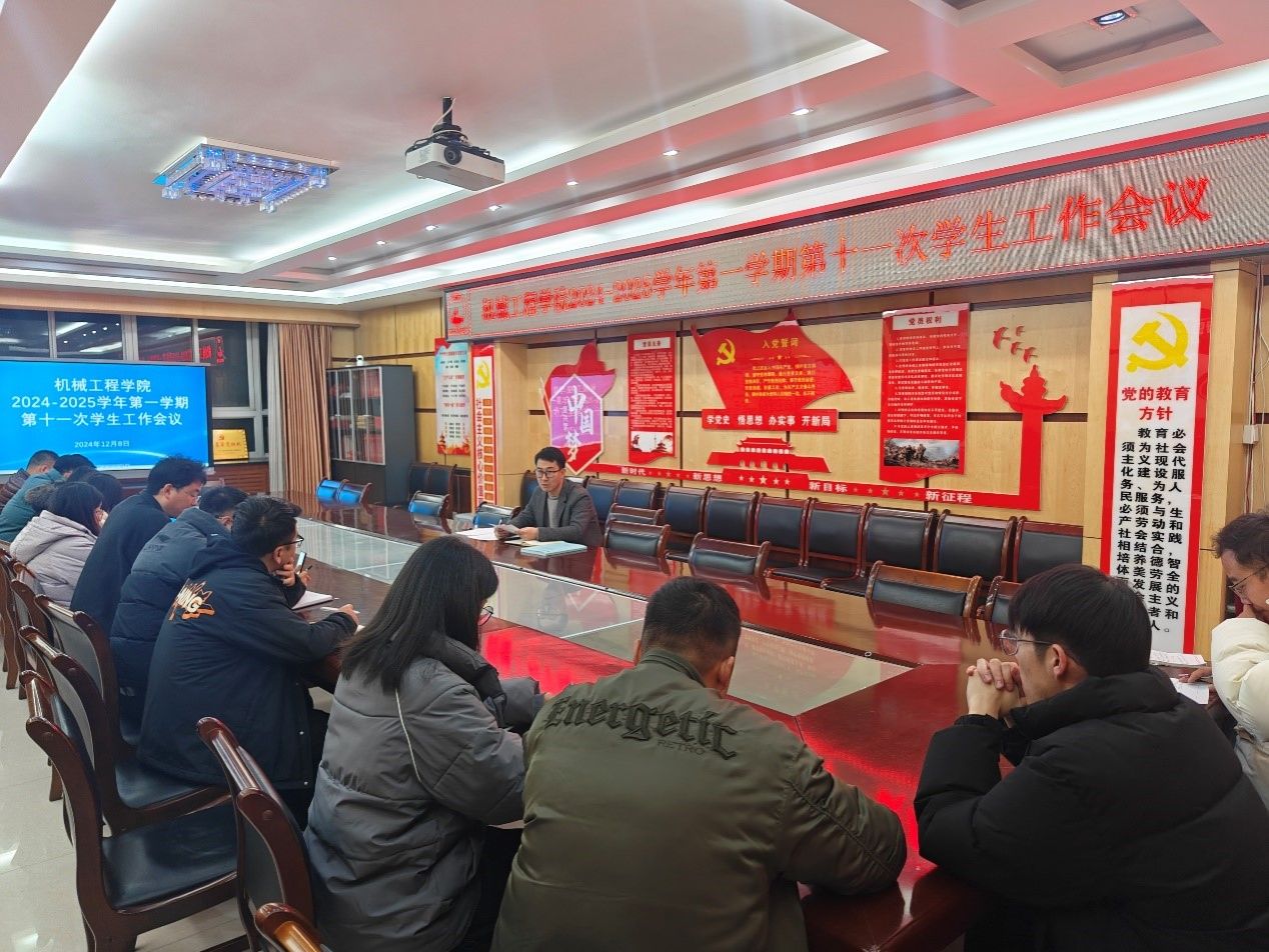 12月8日晚,机械工程学院组织全体辅导员在尚德楼208会议室召开第十一次学生工作会议。会议由机械工程学院党总支副书记周建军主持,全体辅导员、班主任和学生会干部参加会议。