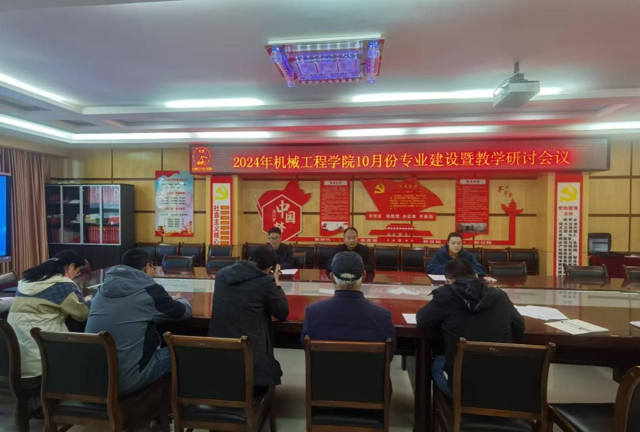 为进一步主动对接产业发展,进一步提升教学质量,2024年10月22日下午,在尚德楼208会议室,机械工程学院召开专业建设暨教学研讨会,院长毛文亮、副院长王琼、党总支副书记周建军、副高级以上职称教师、专业带头人、专业负责人、教研室主任参加。
