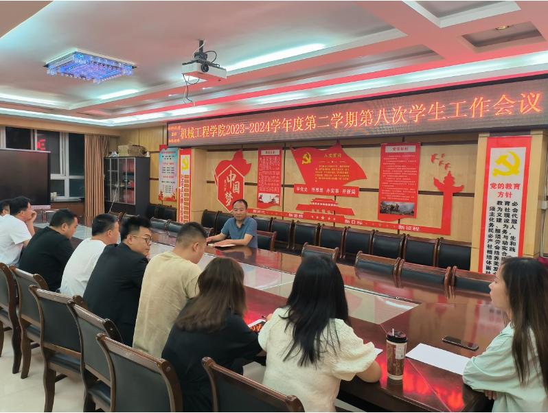 5月19日,在2号教学楼208会议室,机械工程学院召开2023-2024学年第二学期第8次学生工作会议。学院党总支副书记毛文亮及全体辅导员、班主任参加。