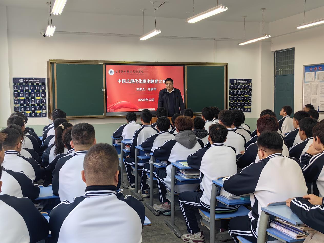 为深入学习贯彻习近平总书记关于办好思政课的重要讲话精神,全面推进习近平新时代中国特色社会主义思想进教材、进课堂、进头脑。近日,学校党委副书记、院长赵彦军以《中国式现代化职业教育大有可为》为题,用创新的理论、生动的语言、鲜活的事例、严谨的逻辑,为机械工程学院JX2391班学生讲授思政课,思政课教学部、机械工程学院相关负责人与该班同学共同聆听了讲座。