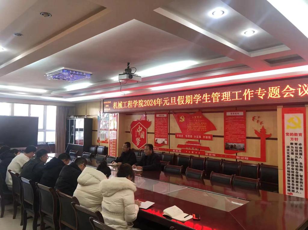 12月29日,在2号教学楼208会议室,机械工程学院召开2024年元旦假期学生管理专题工作会议。学院党总支书记王安平、副书记毛文亮及全体辅导员班主任参加。