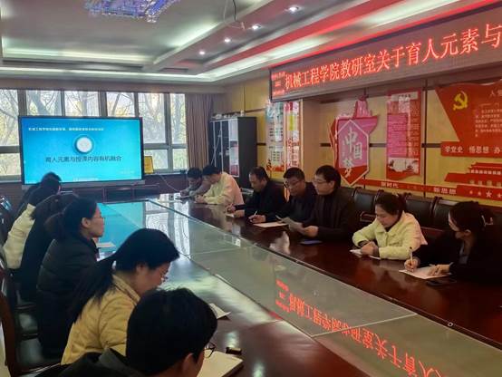11月14日,机械工程学院数控教研室、机制教研室在2-208会议室联合开展以“育人元素与授课内容有机融合”为主题的教研活动。活动由数控教研室主任朱书启主持,机械工程学院全体教师参加。