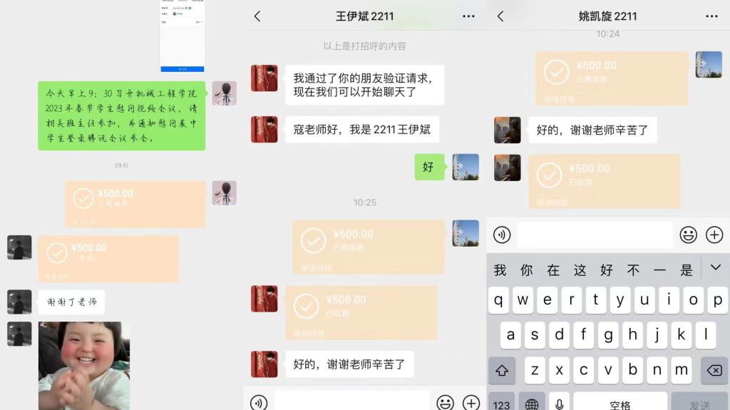 寅去卯来传喜讯,虎归兔到送吉祥。在2023年新春佳节之际,为深入学习贯彻和落实落细党的二十大精神,进一步做好少数民族、两州一县、困难家庭学生的关心关怀和帮扶工作,机械工程学院领导王安平、张田荣、毛文亮、王琼通过线上连线的方式,开展春节慰问送温暖系列活动,把温暖和祝福送到学生心坎上,并致以新春的问候与祝福。