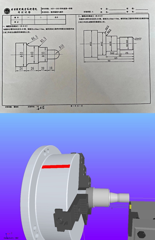 考核评价方式改革旨在转变教学考试观念、改进“重知识,轻能力”传统评价方式,既有针对基础理论、基本操作方法的闭卷考核,又有针对动手实作能力的实操考核。任课教师对考试题目进行科学设计,理论考试既系统的覆盖了学期所学课程专业知识概念、原理方法重点内容又有所侧重,实操考试则涉及学生综合应用仿真软件模拟机床对刀、工件安装、切削加工、零件测量分析等环节。