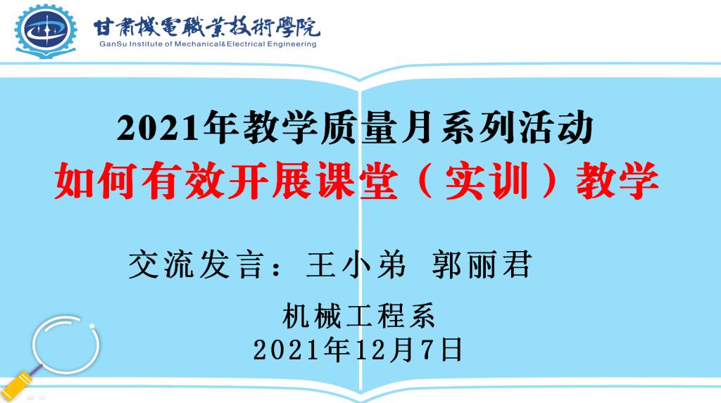 为进一步提高理论、实训教学质量,提高教师的业务能力,促进相互交流,结合学院“教学质量月”活动,2021年12月7日下午,在做好疫情防控工作的前提下,机械工程系组织全体专兼职教师在2-502教室开展“如何有效开展课堂(实训)教学”研讨活动。