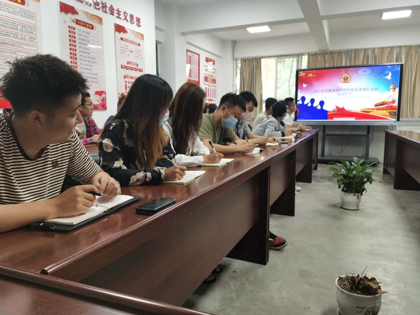 6月10日上午,学院学生处在2-108会议室组织集中观看“2020年甘肃省征兵宣传教育进高校活动启动仪式”直播视频,机械工程系全体辅导员参加。