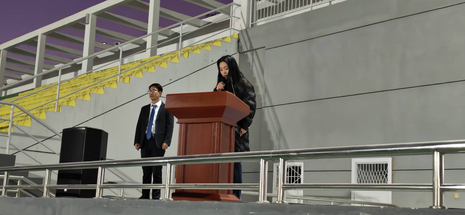 升旗礼毕,全体师生在任燚老师的领读下共同诵读“与宪同行,照亮山河”,铿锵有力的声音传递出对宪法的尊崇与敬畏,让法治精神在潜移默化中浸润心灵。
