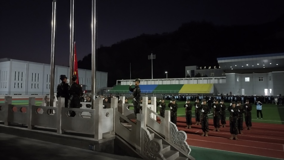 随着指令发出,国旗护卫队成员精神抖擞、步伐铿锵,护送国旗入场。7时整,雄壮激昂的《义勇军进行曲》奏响,鲜艳的五星红旗冉冉升起,全体师生庄严肃立,齐唱国歌,行注目礼。