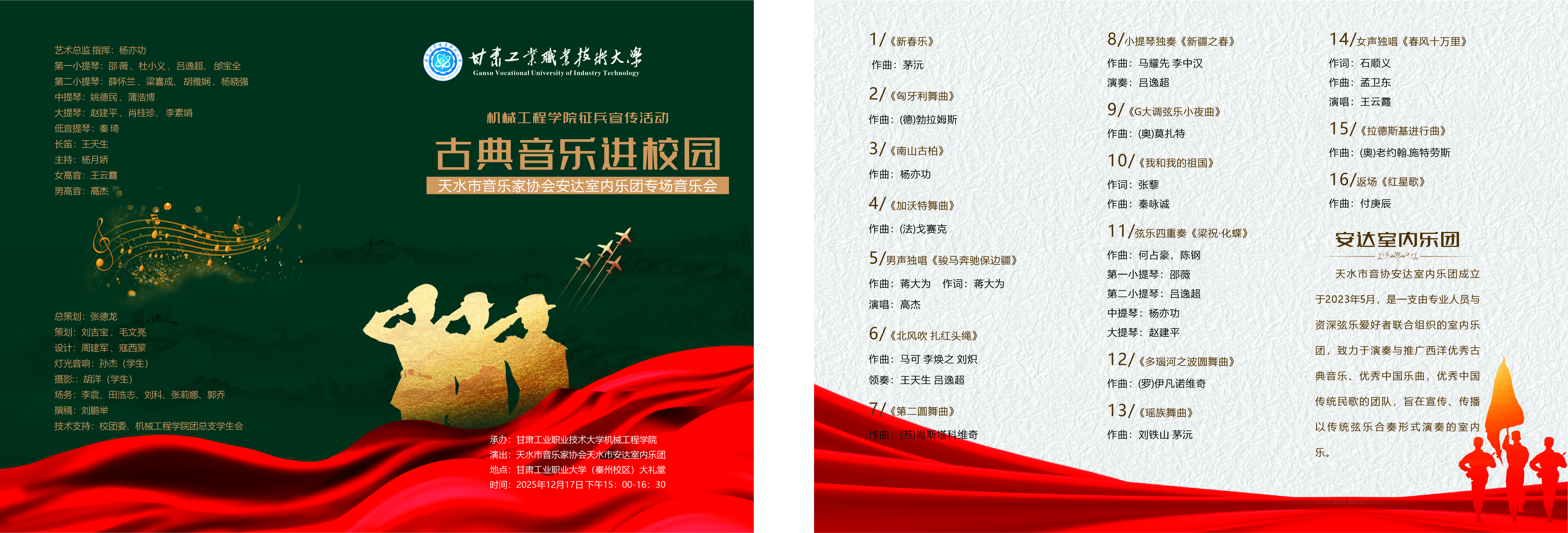 “在音乐里听见家国情怀,更懂了‘一身戎装’的意义。” 现场学生坦言,这场 “艺术 + 征兵” 的活动既丰富了文化生活,也让参军报国的种子在心中萌芽。学院负责人表示,后续将持续创新征兵宣传形式,以文化浸润激发青年学子的家国担当,助力更多青年在军营书写青春华章。