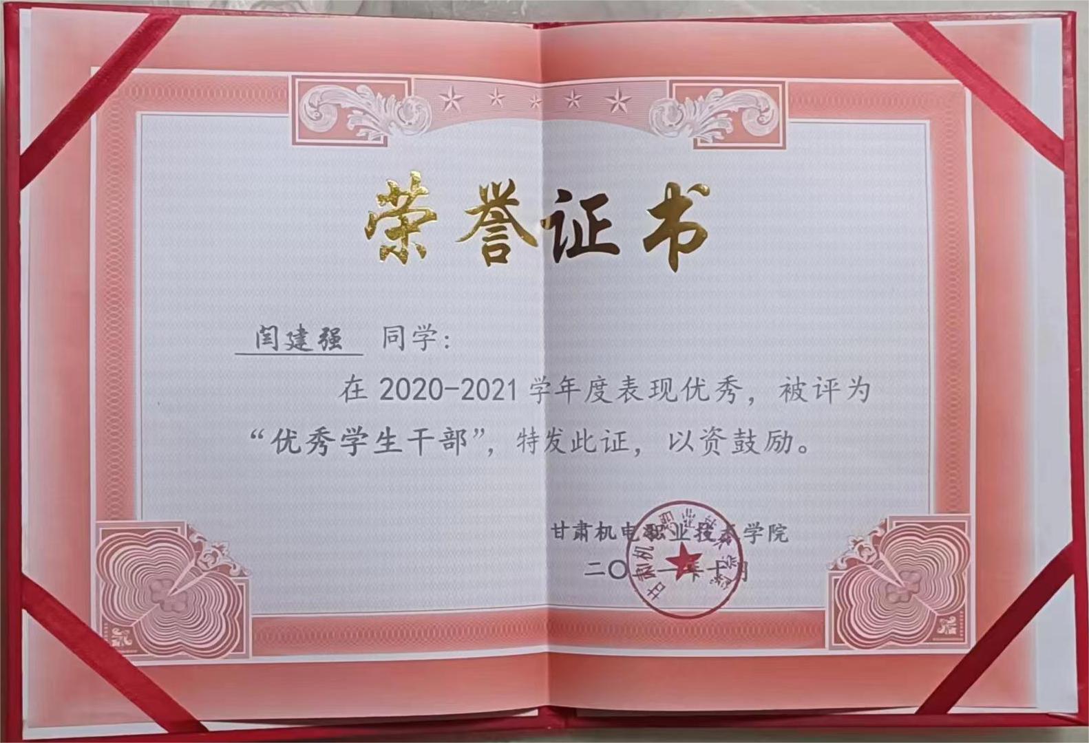2020-2021 年度荣获学院“优秀学生干部称号”;