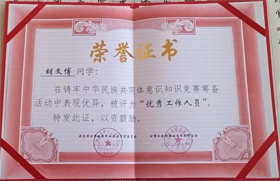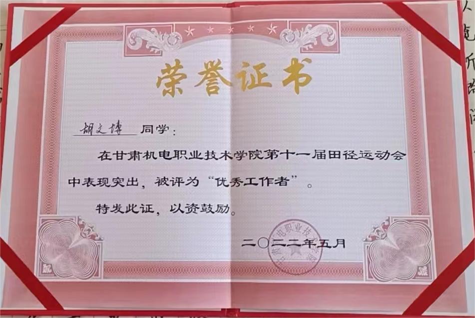 2022年5月在学院第十一届田径运动会中表现突出被评为“优秀工作者”。