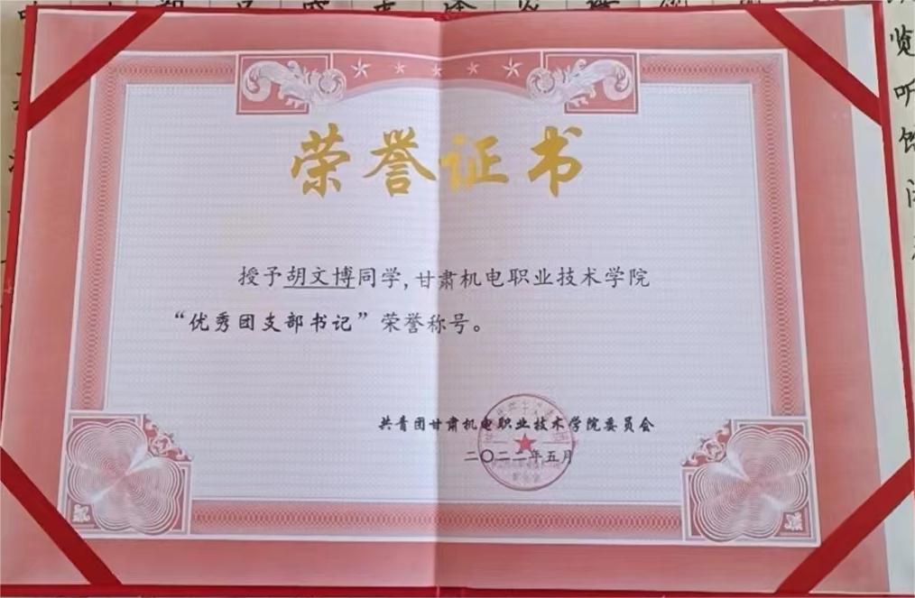 2022年5月被授予五四红旗“优秀团支部书记”称号。