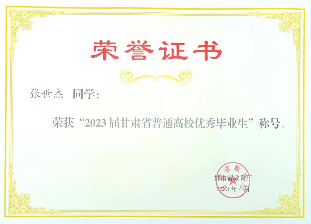 2023年4月获得甘肃省高校“优秀毕业生”称号。