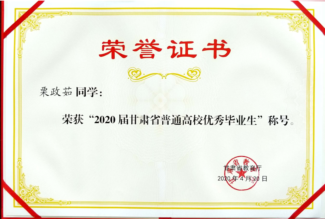 2020年度甘肃省普通高校“优秀毕业生”