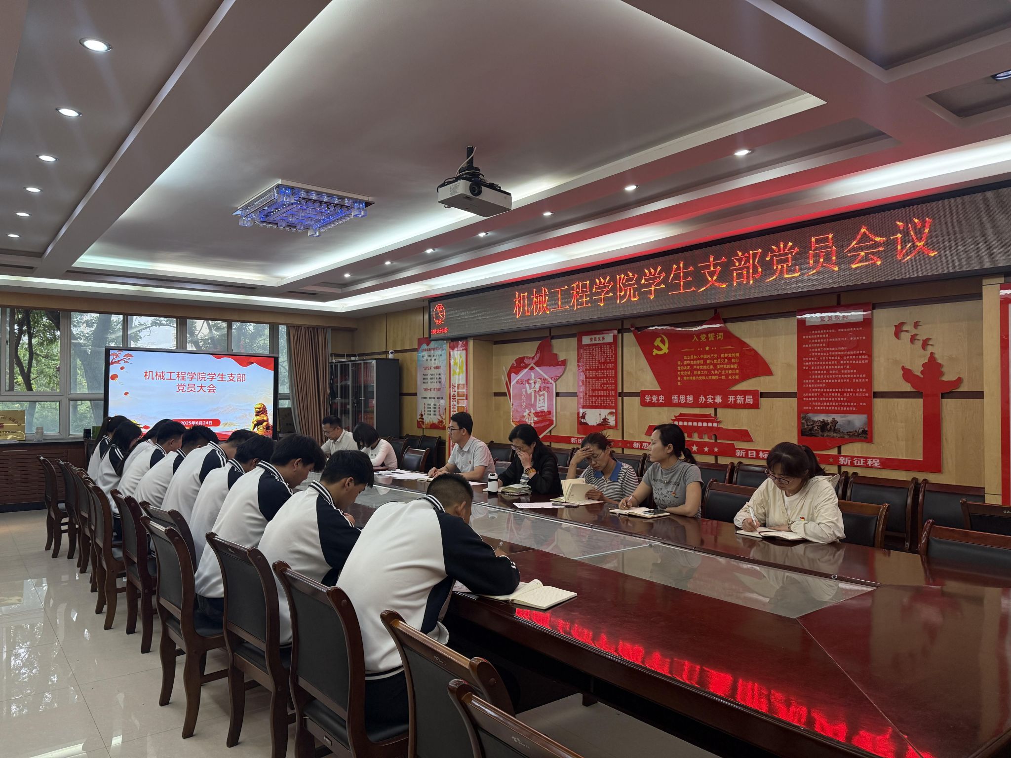 为深入贯彻落实《中国共产党发展党员工作细则》,深化新时代学生党员队伍建设,机械工程学院学生党支部以“高质量、严标准、强引领”为目标,于6月集中开展学生党员发展工作。通过规范程序、强化教育、融合实践,切实将政治过硬、品学兼优的青年学生吸收到党组织中来,为学院党建注入青春活力。截至628日,学院共发展积极分子34名、预备党员11名、转正9名,均为团员推优入党,班级学业标兵或学生骨干。