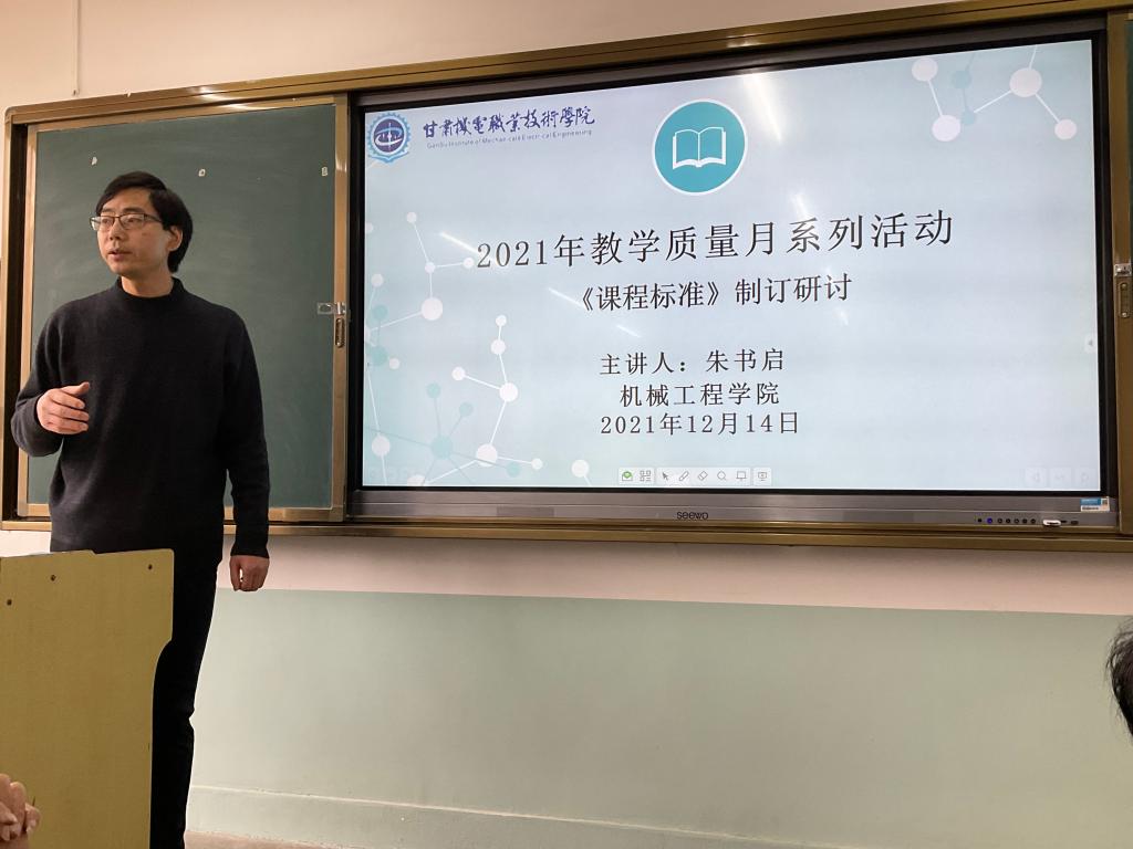 课程标准是规定某一学科的课程性质、课程目标、内容目标、实施建议的教学指导性文件,是对学生在经过一段时间的学习后应该知道什么和能做什么的界定和表述,实际反映对学生学习结果的期望。12月14日下午,机械工程系组织全体教师在2-502教室开展《课程标准》制订研讨活动。