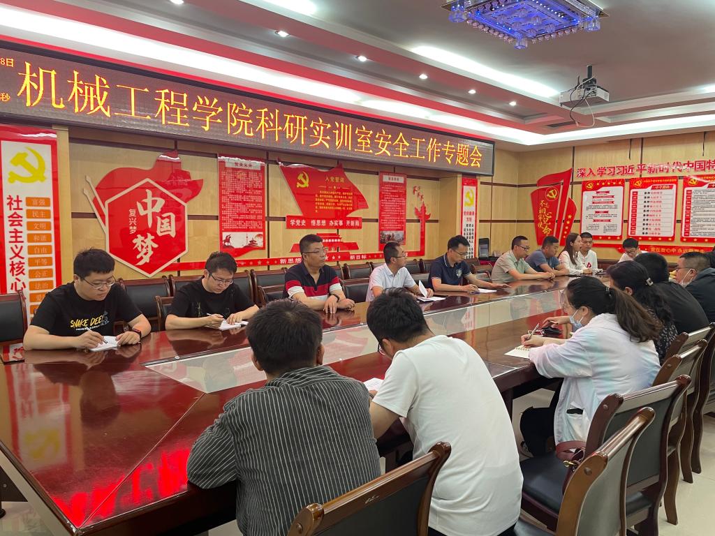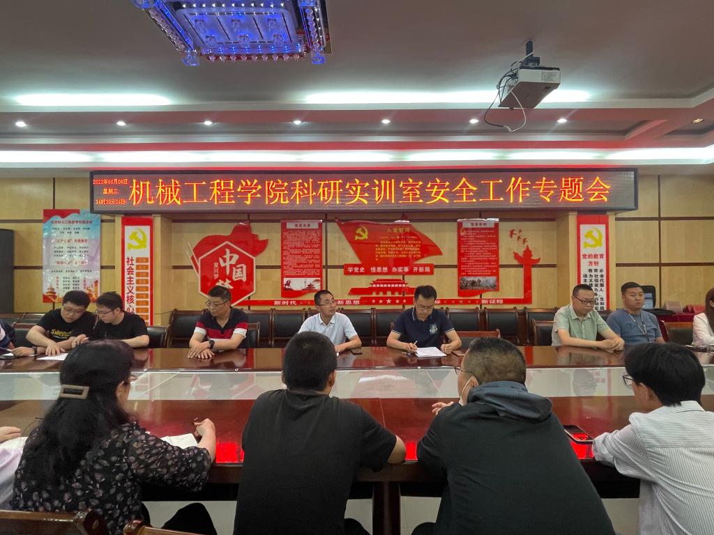 为加强实训室安全工作,进一步规范实训室管理,营造安全高效的实训、科研环境,6月8日下午,机械工程学院在2号楼208会议室召开学院科研实训室安全工作专题会。会议由学院党总支书记王安平主持,全体教职工共同参会。
