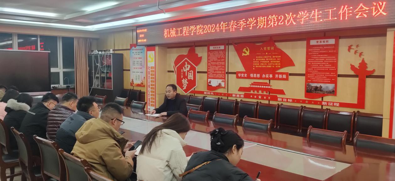 3月3日,在2号教学楼208会议室,机械工程学院召开2024年春季学期第2次学生工作会议。学院党总支副书记毛文亮及全体辅导员、班主任参加。