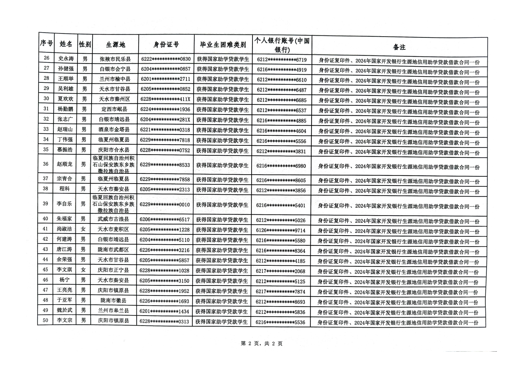 根据《甘肃省人力资源和社会保障厅、甘肃省教育厅、甘肃省财政厅、关于做好2025届困难毕业生求职创业补贴审核发放工作的通知》要求,机械工程学院全面开展了2025届困难毕业生求职创业补贴的宣传、填报和推荐工作,经学生本人申报、各班级民主评议小组审查、学院学生资助评定工作小组审核后,拟同意张志飞等50名学生初审通过困难生求职创业补贴,现予以公示,名单后附。
