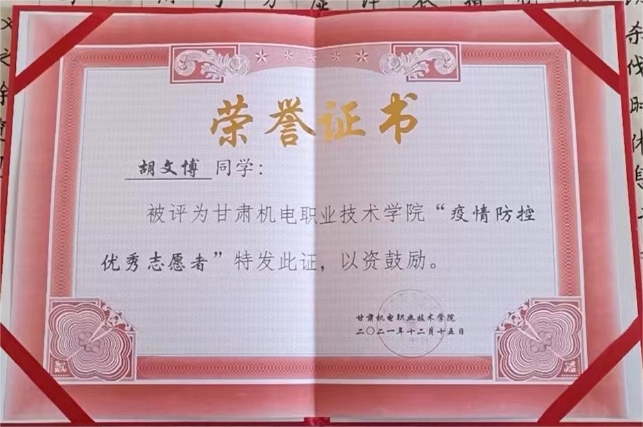 2021年度被学院评为“疫情防控优秀志愿者”。